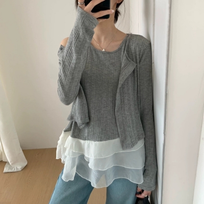 - on.[CD630]프릴망사레이어드가디건