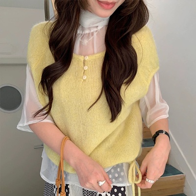 on.[NT736]버튼스트링반팔니트